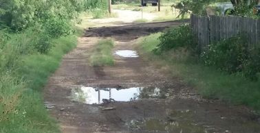 An example of poor drainage on a base road. Aggregates have been replaced, but once again they are beginning to sink below grade.